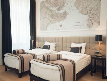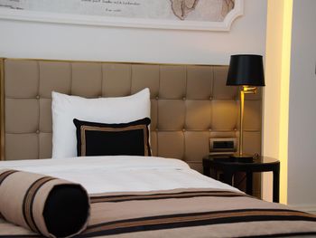 Нам дали стандартный номер вместо оплаченного заранее улучшенного!!! Кровать удобная, но подушки просто ужасные! Очень высокие,спишь полусидя,просыпаешься с больной шеей,после одной такой ночи я спала вообще без подушки,тк поменять было не на что,все такие у них! Еще огромный минус -ужасно воняло конвлизацией в ванной ! Просто ужасно,тухлятиной какой-то! Было противно заходить туда,при том что сама ванная комната чистая и номер тоже,но запах ужасный! Поменять номер не смогли и прочистить тоже! Больше не вернусь в этот отель именно из-за этих двух существенных минусов!