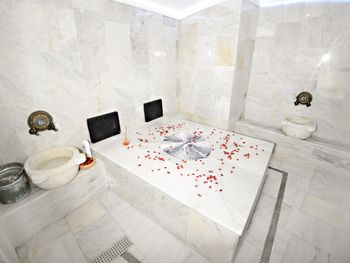 Переселили со 2 на 5 этаж,но шум никуда не делся! 1 мая я уведомила отель и письменно Booking com в том,что я покидаю отель 3 мая утром,вместо 8 мая,так как я не могу не спать 9 ночей подряд! Деньги за 5 непрожитых ночей отель возвращать отказался Деньги за 1ю ночь они сняли еще до заезда...остальную сумму примерно в 500 евро они не вернули и booking comтоже не приложил к этому особых усилий,хотя я являюсь genius путешественником и бронирую только хорошие отели! Накануне отъезда я попросила трансфер в аэропорт,который не был выполнен и утром рано пришлось спешно ловить такси... Я давно не встречала такого вызывающе равнодушного отношения персонала! Отдельно о SPA этого отеля ; массаж происходил в какой то каморке с грязными полотенцами,а после сауны,меня положили в хамаме на ледяной камень,который должен быть подогретым...