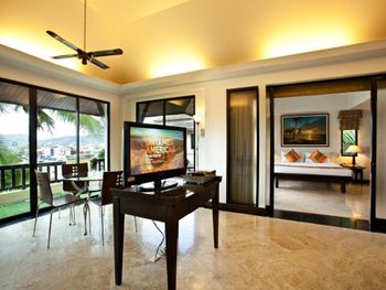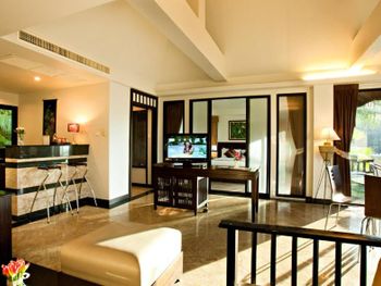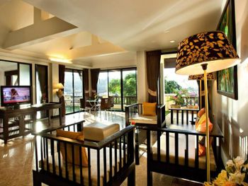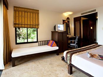 Номера с видом на бассейн или сад и гостиной зоной декорированы светлыми тканями и элементами из темного дерева. В числе прочих удобств сейф, мини-бар и собственная ванная комната.