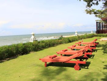 Можно добавить лежаков на газон ближе к морю.Там приятная тень от деревьев и прекрасный вид на море! На песок у моря ставить бессмысленно,т.к. с 12.00 поднимается ветер , и лежать все равно некомфортно-мелкий песок летит в глаза! Около бассейна нужно установить душевые для мытья ног,т.к. с газона люди несут грязь на плитку и в воду.Поэтому в бассейне мутная вода. Создается впечатление,что и пол вокруг бассейна не моется. Но это не так. Мальчик,который выдает полотенца,моет пол, но это просто бесполезно.