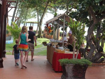Непродуманными лежаки у моря - их нет, есть только на территории и то на тебя падают иголки и шишки от деревьев, сильный ветер, так как на высоте. Загорать не возможно, нет у лежаков столиков- сумка, очки, книги все приходиться держать на земле. В номере 119 и видимо весь такой первый этаж, номер без балкона на стороне бассейна в комнате не хватает освещения, закрываешь шторы чтобы тебя не видел= отдыхающие , а в комнате два светильника точечных у кровати и один под потолком над столом. В душе нет полок - все падает, положить некуда. Приехали во Вьетнам , а за пять дней не было п&готовлено ни одного блюда из морепродуктов, не было рыбы, когда она плавает рядом в море и доступная по цене. Видимо очень экономят на отдыхающих.шум от отдыхающих туристов из Азии, которые приезжают на пятницу-воскресенье, визжат как на пляже, так и в отеле, бегают с криком на завтраках, поведение не приличное,,,,