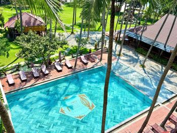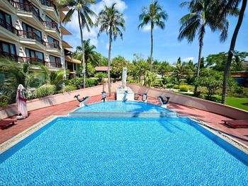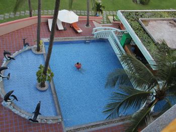 Немного далеко от большинства кафешек и магазинчиков. Подозрительно мутный бассейн.