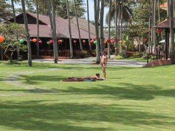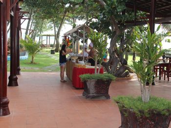 Территория отеля большая, зелёная, можно позагорать около бассейна, можно под пальмами, можно пройти к морю. Завтраки стандартные по Вьетнаму.на выходных