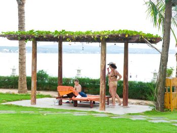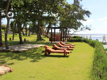 Отличный бар на пляже, большая зелёная территория с шезлонгами и гамаками