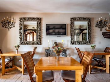В ресторане отеля обустроена крытая и открытая зона отдыха. Завтрак, обед и ужин сервируют в итальянском ресторане Dante, а в баре Case Del Sol можно заказать прохладительные напитки и закуски.