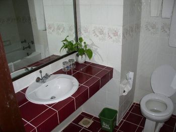Старая сантехника, очень неудобный душ. Двери в туалет вообще отстой :(.