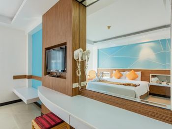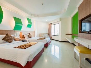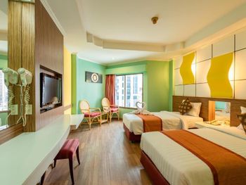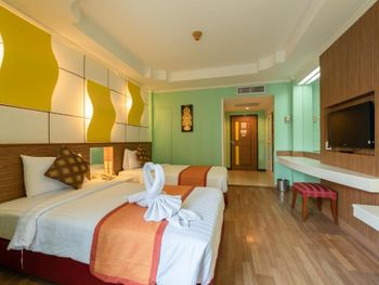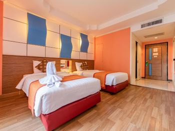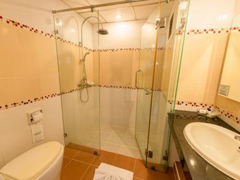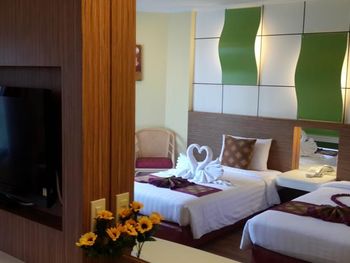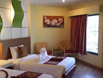 Номер был немного пошарпанный, в коридорах постелены ковровые покрытия и невооружённым глазом видно, что грязно. В номере воняло то ли дуриан как то пронесли в отель, то ли носками грязными, прям перед выездом в душе потекла вода с потолка. Завтраки обычные, но не очень вкусные.