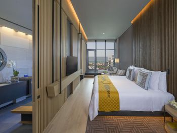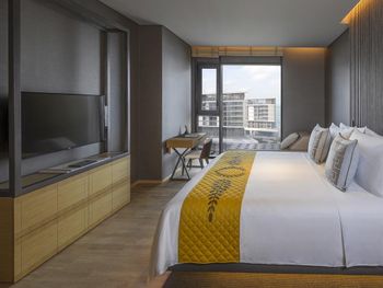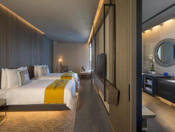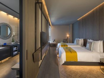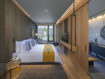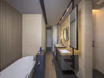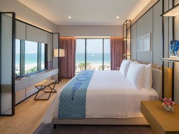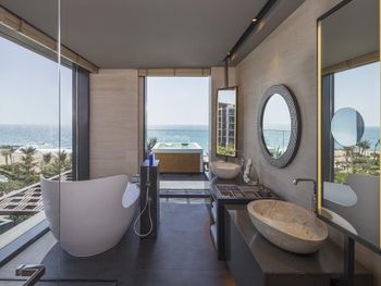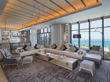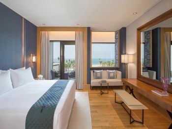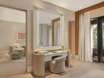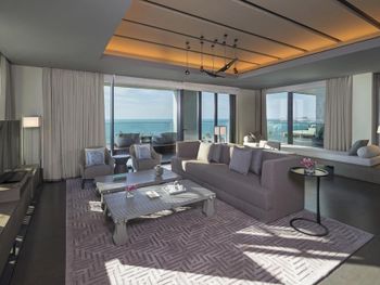 Бронировали люкс за несколько месяцев по хорошей цене - по приезду с утра оказалось, что бронь была отменена за день до заезда то ли Букингом, то ли службой размещения. Пару часов ожидания в подвешенном состоянии подпортили первое впечатление, но отель вывез ситуацию, предложив заселиться в люкс большего размера. Так что считаю инцидент исчерпанным и поставлю это в плюс. По локации - ну тут грех жаловаться, весь Bluewaters в вашем распоряжении прямо под боком, со всеми развлечениями, ресторанами и прочим. От отеля на Око Дубая билеты со скидкой, можно записать на номер, удобно. Территория относительно небольшая, но зеленая, присутствует тень, можно прогуляться по дорожке вдоль пляжа от колеса, до конца соседнего отеля Banyan. Пляж с открытым морем, что здорово, бывают волны, все по честному. Песок чистый, лежаки - как везде, в общем нормальные, сервис еды и напитков по меню в наличии. Из зоны у бассейна выжато по максимуму, отличные мягкие лежаки, персонал разложит вам полотенца, но будьте готовы, что ближе к 10 может не быть свободных мест. Сам бассейн небольшой, но хоть есть глубина посередине в 150 см, это хорошо. И конечно он с охлаждением, что дико актуально) Номер - тут интересная ситуация получилась. Нам достался 77м люкс, простора хватает, лоджия и панорама отличная на город, но критически мало места для хранения вещей, всего один шкаф и тот неудобно открывать из-за прикроватной тумбочки. Как пример, приходилось использовать подставку под чемоданы как место место хранения футболок, а пляжные принадлежности и нижнее белье распределять по многочисленным ящикам! Косметика Byredo - уровень. Управление светом и двумя кондиционерами очень удобное с любой точки. Уборка два раза в день - без нареканий. Тапочки классные! Короче - понравилось! Отдельно хотелось бы отметить персонал - если на ресепшен он слегка хмурый и весь в делах, то на завтраках, у бассейна и у моря парни трудятся с улыбками и стараются всем угодить, за что получают наши симпатии и хорошие чаевые)