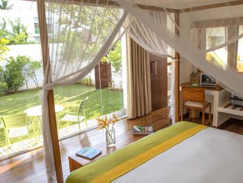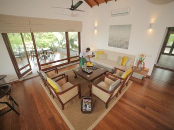 Прекрасное расположение отеля. Очень уютные виллы с грамотной планировкой, включая панорамные окна в номере и собственную территорию с садом и зоной отдыха. Очень понравился душ-водопад в саду. Шикарный пляж в тихой бухте. Большая территория отеля по которой бегают варны и ягуаны. В сад номера приходят обезъяны. Очень хороший ресторан отеля с потрясающими завтраками. Один из лучших отелей на побережье Шри Ланки.