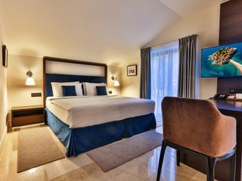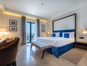 Отсутсвие оборудованного пляжа, номера премиальной категории « с видом на море» выходят на грязный общественный пляж В номерах отсутсвует питьевая вода - для отеля такой категории - неприемлемо! Сложно представить более скудный и примитивный завтрак. Очень много ошибок над которыми нужно серьезно работать. Отель не стоит своих денег от слова совсем.