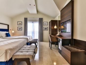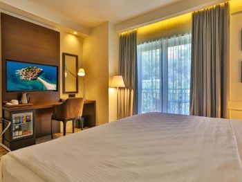 Размер номера, качество и периодичность уборки номера, у отеля нет территории. Отель заявлен как 12+, НО поскольку сотрудники пляжа продают шезлонги всем подряд на пляже будут орущие дети, надувные крокодилы и т.п. Мы бронировали четырехместный номер, по фото было понятно, что это одна комната и мы были к этому готовы, но по факту это обычный TWIN и для 4-х было тесно, а так же халата было всего 2. Номер убирали только когда поймаешь горничную и приведешь в номер. У отеля совсем нет территории, но это особенность местности. Справа и слева от пляжа общественные пляжи и люди ходят мимо тебя постоянно.
