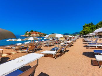 Великолепный собственный пляж, широкие и очень комфортные шезлонги, зонты, вид на остров Св.Стефана, прекрасный ресторан, вкусная еда, чистые, новые и комфортные номера, молодые и симпатичные горничные. Для ребёнка был раскладной диван, очень качественный и комфортный для сна.