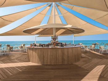 Просторный пирс с уютным баром и 4 удобными лестницами для спуска в море