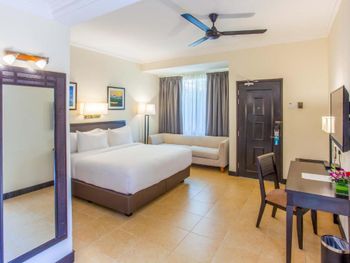 Расположение идеальное: 15 минут от аэропорта, первая линия, свой пляж с лежаками. Номера просторные, не идеальный, но хороший ремонт, все удобства в номере есть, наборы для личной гигиены постоянно добавляли, бонус от гостиницы: минибар в номере полностью бесплатный (вода, газировка, пиво, попкорн). Завтраки хорошие (Кофе отличный). Вобще во всей Малайзии и в частности в этой гостиницы мы заметили участливо безучастное отношение к клиенту)))с одной стороны вроде хорошо обслуживают, а с другой стороны плохо))))) Нужно очень внимательно следить за включением лампочки НЕ БЕСПОКОИТЬ, иначе вечером к вам будут ломиться уборщицы, чтобы как комплимент от гостиницы принести вам 2 шоколадные конфетки в номер)) приятно конечно, но ломятся они настойчиво))))