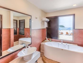 1.Мы были в начале лета(возможно не сезон), с фруктами просто беда, либо зеленые, либо безвкусные и ты кушаешь просто траву на завтрак, азиатского обилия фруктов мы не нашли), но это не только в гостинице такая проблема, также иногда приходилось трясти работников, чтобы обновили тарелки с сыром, хлебом, иначе могло по пол часами быть все пустым. 2.Ресторан на территории гостиницы просто ужасен: выбор блюд, сам их вкус, один раз нашли длинный черный волос обмотанный вокруг курицы (точно не наш, мы светлые))))), сказали официанту об этом, он просто унес этот кусок и исчез, нам хотели под шумок включить это блюд в счет, но без скандала, а после беседы вычеркнули)) 3. Утром на пляже приносили всем, кто лежит, бесплатно кувшин с водой (это приятно), но больше за целый день никто не ходит, официантов на пляже не выцепить, надо идти в в ресторан, чтобы что-то заказать на пляж, у бассейна такая же история. В ресторане что-то заказываешь из еды, готовят очень долго, хотя ресторан пустой 4. Номера убирали не идеально, полы всегда были грязные, постельное белье меняли только когда напишешь записку 5.У нас был инцидент в виде ядовитой медузы, которая ужалила мужа и ему стало плохо, на ресепшене участливо выдали водителя и бесплатно довезли нас до больницы, сначала мне это показалось щедростью со стороны гостиницы и было приятно, но потом я поняла, что скорее всего они просто побоялись скандала, т.к. оказывается летние месяцы самые опасные и бывают медузы (об этом мы узнали в соседней гостинице в виде знака на пляже), но в этой гостиницы персонал не обмолвился ни словом (нет никаких знаков на пляже), якобы были буйки с сеткой, но сетки там по факту не было и буйки жили почему то своей жизнью и каждый день плавали в разных частях пляжа, когда мы начали узнавать у нашего персонала про сезон медуз, сразу начали нести какую то чушь, плохо понимать английский и т.д. Дорогие отдыхающие: будьте очень осторожны!