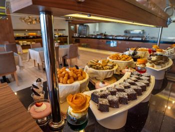 В какой-то момент в ресторане перестало хватать столов для всех желающих пообедать. Сложилась парадоксальная ситуация - либо не хватает столов, либо, когда освобождаются столы, не хватает еды. Возможно, после нашего отъезда эту проблему решили. Ещё хочу отметить, что соки, которые в ресторане наливались в охладитель, были чрезмерно разбавлены водой. Пить такие соки невозможно.