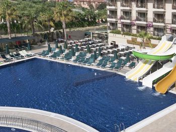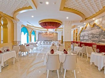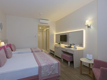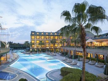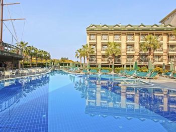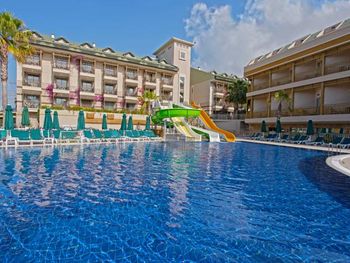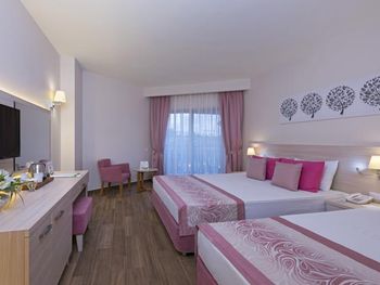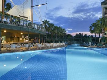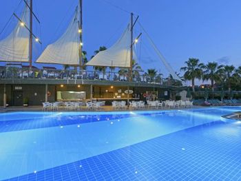 Ещё было очень шумно. Причём громкая музыка была слышна по ночам именно из соседнего отеля ( сцена соседнего отеля находится за забором). Мы ездили с ребёнком и это доставляло много неудобств. Много курят, прямо на балконе и дым идёт в комнату. Территория очень маленькая, негде погулять вечером. Анимаций очень мало, на немецком языке. В холле иногда включали мультики, тоже на немецком языке. На сайте написано, что включено: сейф, интернет. Обман. Всё это за дополнительную плату. Сейф 2 евро в сутки. В пятизвездочном отеле! Интернет -1 час в лобби баре, остальное- платно. Еда- мало фруктов, морепродукты- за 2 недели 1 раз подали мидии. Арбузы часто давали то, что оставалось несъеденным, несвежей нарезки. Очень много народу. Плохо, что столы не закреплены, приходилось каждый раз на обед и ужин искать себе место.