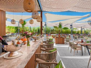 несоответствие цена -качество. концепция продавать дешевую еду под видом выбора «а-ля карт» ( исключение - рыбный ресторан на ужин). отношение персонала (не уровень 5*, и не уровень 5* Бодрума). странная дорога к пляжу через спа и летящие в голову дротики , мимо очистных сооружении с соответствующим ароматом.
