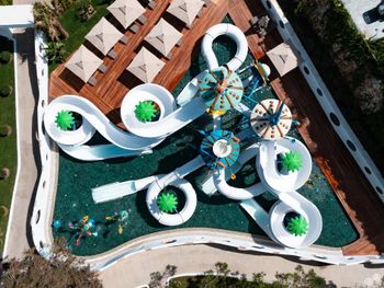 Очень красивая, ухоженная, большая территория, много разных бассейнов, чистый пляж с удобными лежаками, вкусное мороженое, десерты, фрукты, хороший тренажерный зал.