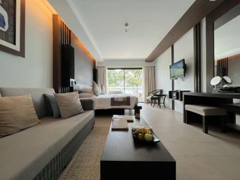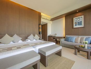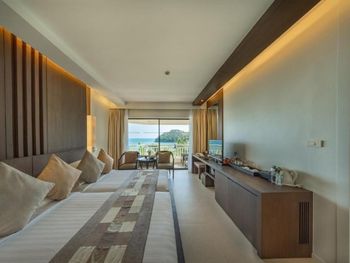 У нас был чудесный номер с панорамным видом. Это очень красиво. Хороший завтрак, приветливый персонал. Очень красивая и зеленая территория - настоящее Тайское настроение. Шикарный частный пляж - очень чистое теплое море без волны, белоснежный песок, красивый пирс. Много шезлонгов, всегда есть место. Можно брать кайяки или сапы для морских прогулок. Уединение и гармония. Красивый ресторан на пляже. Отель находится на горе, но регулярно ходит шаттл до всей инфраструктуры и Променада. Часто езжу в Тай, здесь очень понравилось, обязательно вернемся!