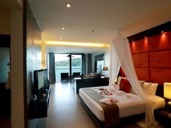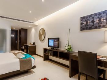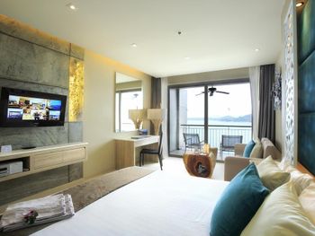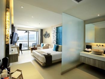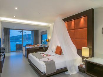 потрясающий вид из окна. красивый дизайн номеров. большой выбор на завтрак. фрукты, соки, круассаны, горячие блюда и проч. хороший кондиционированный фитнесс-зал. 2 бассейна: один прямо где завтрак, второй через дорогу у Sienna Rock cafe. бассейн небольшой, есть отдельная зона с джакузи. вид на море потрясающий. пляж камала - минут 10 пешком, направо из отеля до 7-11 и налево. если от 7-11 идти дальше прямо, то у дороги недалеко 24 часовой family-mart, налево супермаркет Big-C, Tesco, ресторанчики, где можно поужинать, ср. цена блюд около 150 бат, массаж.