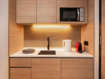 Всё есть, что необходимо путешествинику. А именно плита, микроволновка, холодильник, электрочайник, капсульная кофемашина. Всё на высшем уровне, особенно персонал. А самое главное отель в самом центре.