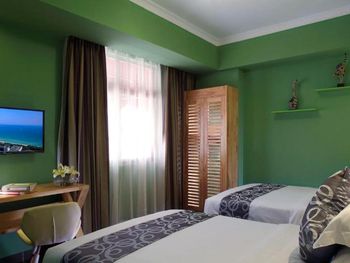 Плохая шумоизоляция в номерах, слышно вообще всех кто ходит в коридоре. Уборка посредственная, где-то через дня четыре пребывания уже перестали даже кровать заправлять. Но воду стабильно каждый день давали, полотенца меняли. Неудачное расположение кондиционера, дул прямо на кровати, из-за чего проболели буквально весь отпуск. Без него спать было невозможно, окна балкона выходят на дорогу и стойку, одну ночь промучились, когда совсем плохо себя чувствовали, после пришлось кровати двигать, чтобы хоть немного уйти из под кондиционера. Ну и забронировали номер с одной кроватью, заселили в номер с двумя, но это мелочи, возможно просто не было других вариантов. Приехали поздно, так что решили, что и так сойдет.