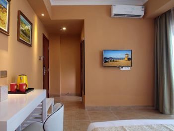 Номер очень потрепанный, шторы по-моему ни разу не стирали, все старенькое, скрипучее, пыльное. Убираются так себе. Под шкафом гора песка как лежала, так там и осталась. На балконе пыльно. Окна грязные ужасно. За окном стройка, которая работает и ночью (при закрытых окнах нормально). В душе если помыться, весь туалет в воде. Нет ёршика ( это по-моему у них во всех отелях).