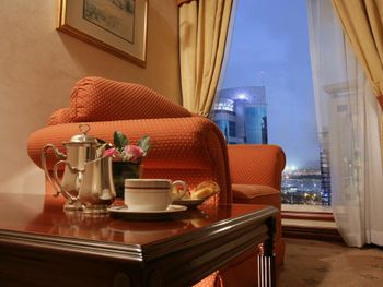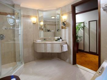 Отель открыт в 1997 году и этим всё сказано. Румсервис - порции мизерные, невкусные. Сыр принесли "пластмассовый", единственное красное вино (без выбора) дорогое и отвратительное. Виноград С КОСТОЧКАМИ, халат и гигиенические наборы принесли только после звонка на ресепшен. На клубном этаже нельзя взять тарелку из бара в номер - пришлось как в турецком отеле заворачивать яблоки в салфеточку. Около бассейна на крыше нет воды, полотенца выдают под роспись. Звукоизоляция отвратительная, слышен топот и разговоры в коридоре и в соседних номерах. На завтраке НЕТ кофе - пойло из ведра назвать кофе язык не повернется. Попросили сделать нормальный капуччино - нам 5 раз сказали что это за дополнительные деньги, 20 минут делали кофе и принесли что-то совершенно невнятное. Еда невкусная. так как кофе принесли через 20 минут, мы захотели взять его с собой - нам не отдали чашку и перелили капучинно в бумажный стаканчик, естественно убив всю пенку и подняв муть в стакане. Номера старые и убитые: раковина покрашена розовой краской, дверь облупленна, в углах паутина и пыль. и всё это называется ПЯТЬ ЗВЕЗД!!!!!!