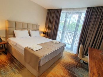 Плюсы: - не старый (все достаточно новое и приятное на вид). -номер убран, все, что указано в удобставах, присутствует. -расположение неплохое, хоть и находится рядом с дорогой, звукоизоляция справляется на ура. -персонал отзывчивый и приятный -завтрак вкусный и разнообразный