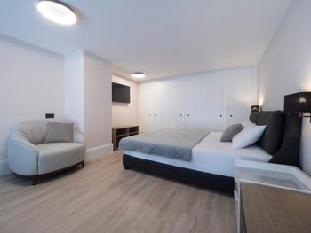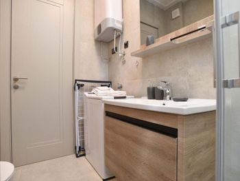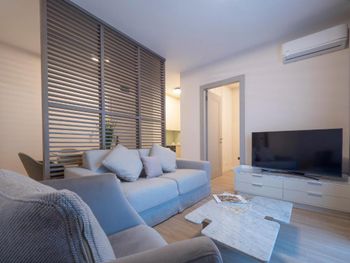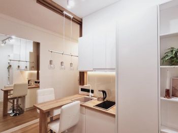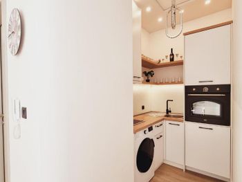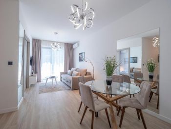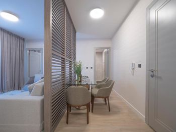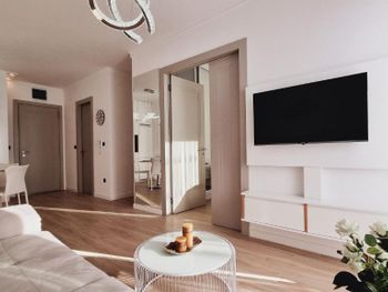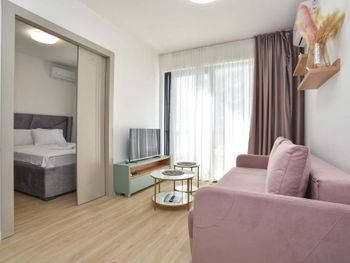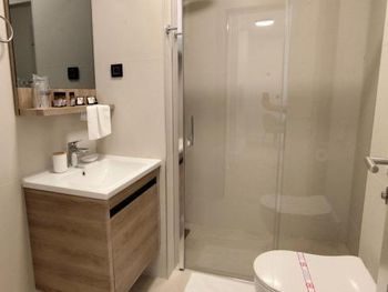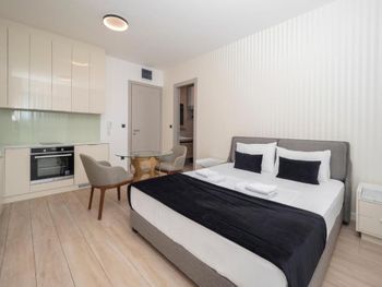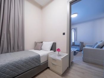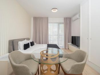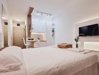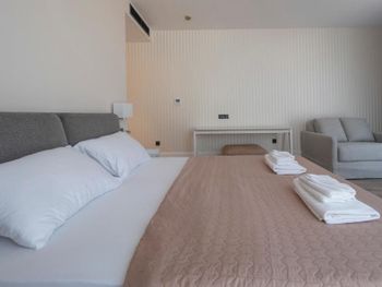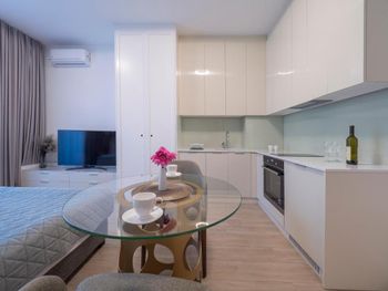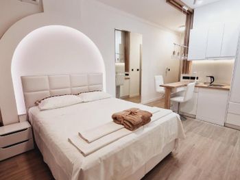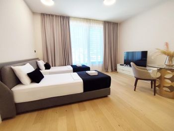 Апартаменты очень маленькие и грязные. На диване были ужасные пятна и стекло - очень неприятно садится на такой грязный диван. Думаю, сделать химчистку при такой стоимости апартаментов - не проблема. Кровати маленькие и неудобные. Ванная достаточно большая, но при этом некуда повесить полотенца или положить свою косметику. Вид с балкона на стройку и шумную дорогу - окно ночью невозможно открыть.