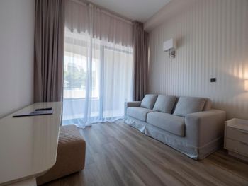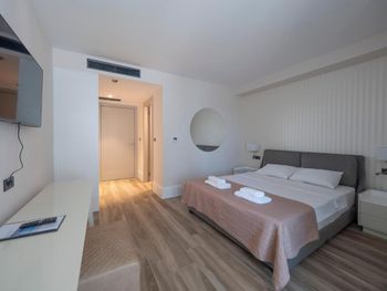 Единственное было пару минусов: 1)у нас не работали розетки у кровати и их так никто и не починил, хотя мы обращались на ресепшен. Было очень неудобно заряжать телефоны 2) хотелось бы иметь в в номере сушилку для белья, чтобы сушить мокрые вещи после моря + хотелось бы иметь пляжные полотенца