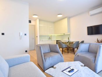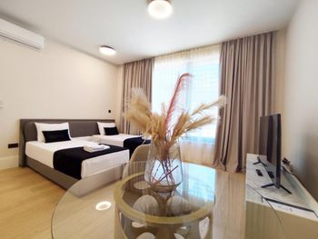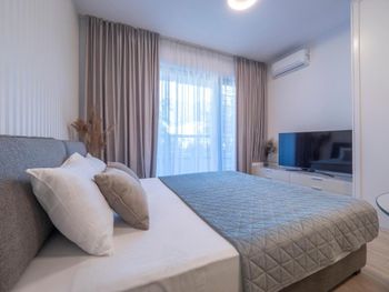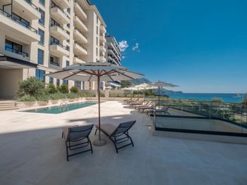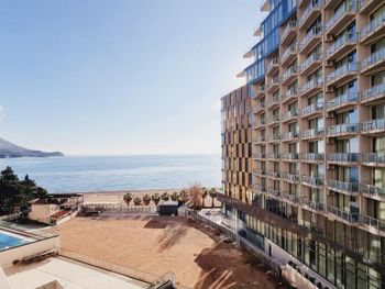 Отличное месторасположение, до пляжа три минуты пешком, два лежака и зонтик 20€, но есть и бесплатные зоны где можно со своим зонтом и полотенцем. Потрясающий вид с балкона на пляж, к сожалению часть этого вида закрыта другой гостиницей, но из нашего номера было видно почти всё и даже Свети Стефан. Уборка каждый день, замена полотенец, смена постельного белья каждые три дня. Хорошая подземная стоянка для авто, по предварительной брони, очень удобно. В пяти минутах ходьбы пара супермаркетов, можно купить всё необходимое. В номере мини кухня и холодильник и стиральная машина, не хватало только кофемашины, за эту стоимость можно было бы хотя бы капсульную поставить, пришлось пользоваться туркой ?. Отзывчивый персонал отвечали очень быстро в приложении букинг, почти всегда кто нибудь есть на ресепшн.