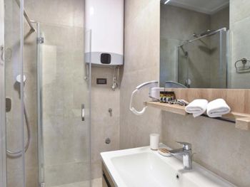 Проблема с дверью на балкон. Открывается с трудом. Прислали мастера, вместо того что-бы ее чинить он показал, как ее "правильно" открывать придерживая рукой. Протекает шланг в душе. Парковка не включена в стоимость проживания (15 евро). Без парковки очень сложно где-то встать у отеля.