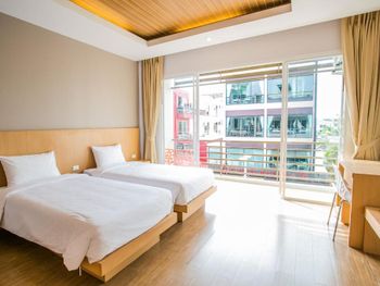 от отеля до пляжа Ката минут 10, расположение очень удачное, в номерах не шумно, при этом от всех самых активных улиц - рынка, барной улицы - отель расположен очень близко в номере хороший интернет, убирают ежедневно