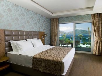 Отель был очень хорош, на ресепшене нас встретила русско-говорящая, менеджер Екатерина, все доступно и понятно рассказала, про особенности и доступности в отели. Сам отель находится на первой береговой линии, имеется своя пляжная зона с лежаками и пирс, водичка тут отличная. На пляже есть прохладительные напитки. Полотенца выдают только за депозит (50лир- 1 полотенце), не считаю это минусом, так как а любое время можно поменять на новое, сухое и теплое)) а деньги при выселении вернуть! У отеля имеется бассейн, бар с алкоголем для нуждающихся))) Номера в отеле чистые, новые, как на картинке. Алкоголь на протяжение всего дня наливают хорошо и в большом ассортименте. Еда просто супер, за время отдыха никогда не были голодными, завтраки, обеды и ужины были прекрасны! Так же можно перекусить в любое другое время закусками у бассейна. Официанты гостеприимны, некоторые хорошо понимают по-русски. Мы были с женой в конце сентября 2019, погода была хорошая, все понравилось в этом отеле!!! 5 звезд отеля заслуженная оценка, рекомендую всем, не пожалеете! Мармарис прекрасен, большая и красивая набережная для вечерних променадов!!!