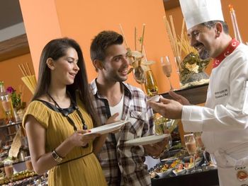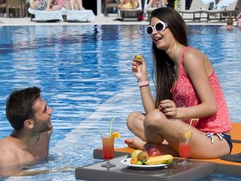 The hotel has many à la carte and buffet restaurants that serve traditional and international cuisine and seafood. You can enjoy various snacks and drinks at Caria Pool Snack Bar. There is also a patisserie where you can find pastry types.