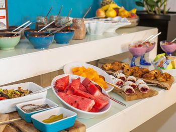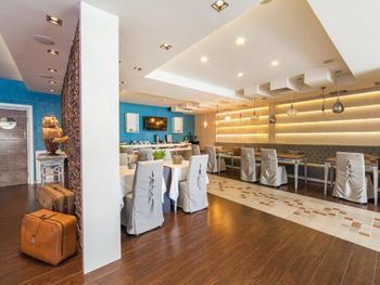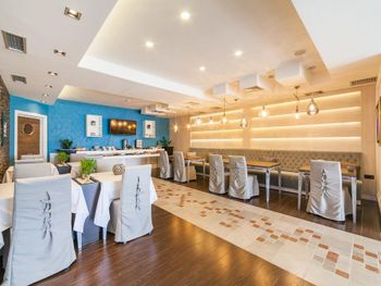 В ресторане отеля можно отведать фирменные рыбные блюда и послушать живую фортепианную музыку. В кафе-баре на пляже подают домашнее мороженое, коктейли и закуски.