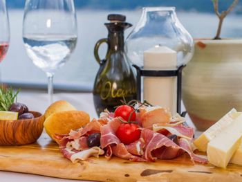 Завтраки разнообразные есть и хамон и колбасы и мясо и сырым овощи и фрукты.могут приготовить любые блюда из яиц,блины ,блинчики.Очень красивый вид с террасы прям море под ногами и горы вокруг.свой пляж .изумрудная вода .