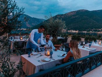 Отличный отель! Все очень стильно, чисто, комфортно. Парковка у входа в отель. Номер просторный. Вид с балкона на Которский залив. В номере: сейф, чайник, кофемашина, чай, кофе, сахар, холодильник с минибаром, посуда, приветственный комплимент (печенье), мыло, гель для душа, шампунь, кондиционер для волос и крем для рук Rituals, фен, тапочки, халаты. Постельное белье, полотенца, халаты очень хорошего качества, чистые, свежие, мягкие). Персонал очень приветливый. Убирались несколько раз в день. Отличный спа: бассейн со струями и водопадом. Лежаки, полотенца. Сауна и хамам. Мы были в феврале, не сезон, поэтому наслаждались всем этим практически в одиночестве. Также можно заказать массаж. Массаж мне понравился. Завтрак был включен. Подается в ресторане на берегу, через дорогу от отеля. Не шведский стол. Круассан, выпечка, сырная и мясная нарезка. Два блюда на выбор: яйца в разной интерпретации, каша или блины, апельсиновый сок и кофе (чай, какао). На случай дождя в холле есть зонтики. Ужинали также в этом ресторане. Очень понравилось все, и меню и обстановка и обслуживание. У ресторана есть веранда, а также пирс, летом там наверное располагается пляжная зона.