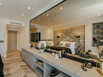 Большой просторный номер с интересным дизайном и с большим панорамным окном и балконом с видом на море и горы, очень приветливый персонал, отличные завтраки. Также мы ходили на ужин в ресторан и тоже все очень понравилось - еда была вкусной (но порции маловаты), а обслуживание отличным. Понравилась большая кровать с очень большим одеялом и мягкими подушками. В номере был чай/кофе/мини-бар и бесплатные "печеньки".