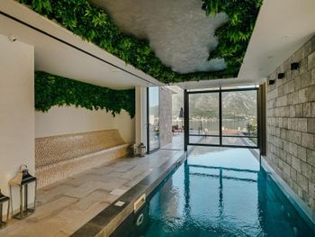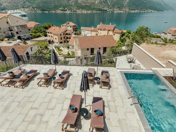 Современный отель с прекрасными видами на Которскую бухту, бассейном и рестораном. Море и прибрежные рестораны в 15-25 минутной приятной пешей прогулки.
