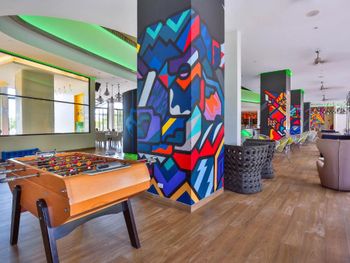 Яркие цвета, хороший бассейн, есть для малышей с песком, очень теплый, есть бунгало-ракушки на бассейне, удобно с детьми, в холле есть диван/кровати для отдыха, наличие кухни в номерах