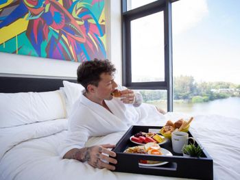 Персонал на рецепции странно реагирует на просьбу о проведении уборки вечером в тот день когда отель забыл сделать уборку (начинает спрашивает висела ли табличка, которая не висела), пообещали сейчас же предоставить воду, полотенца и вынести мусор, а принесли только 3 бутылки воды. В тот же вечер, получив звонок из номера забрать пакет с мусором около двери номера, персонал пришёл за мусором и позвонили в дверь и спросили этот мусор нужно забрать? Разве это не глупый вопрос! При этом время было 23-30 (11:30 pm) и у нас спали дети. Похоже у персонала нет достаточной квалификации. Также кухня в ресторане кроме завтрака невкусная. Ни одного блюда из заказа не возможно было есть, мы заказывали - куриный суп с лапшой, спринг роллы, кальмары в кляре, обжаренные куриные ножки. Также было бы прекрасно, чтобы сделали WiFi на пляже.