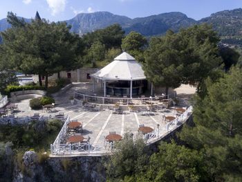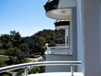 шикарная и интересная территория, чистый воздух и красивый вид с отеля. мало людей, много животных. рядом отличный песчаный пляж, на машине 5 мин езды, пешком будет трудновато, т.к обратно в подъем сложно подниматься