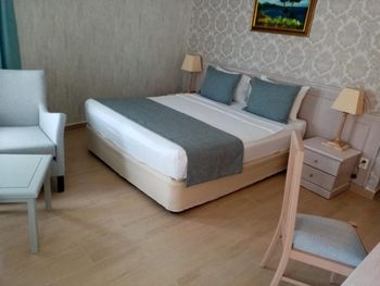 Отель в тихом месте без детей, что нам очень нравится. Всем довольны ( номер, качественное питание (всего много, всегда была рыба и мясо, все вкусно приготовлено, разнообразно), до пляжа 15 мин прогулочным шагом, вообще не напряжно). Пляж песчаный, просторный. Море чистое с волнами. Территория очень красивая, зеленая, ухоженная. Были 2 дня. Всем довольны. Хотела-бы вернуться.