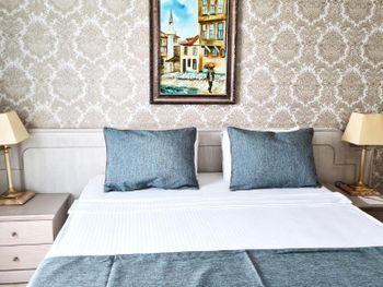 - Само здание отеля старенькое, номера требуют ремонта. На полотенцах и белье были пятна. - Рекомендую брать с собой одноразовые накладки на унитаз, так как выглядит он кошмарно, несмотря на отметку «продезинфицировано». Вместо одной двуспальной кровати мне достались две односпальные, после моего запроса предложили переселиться. - Будьте готовы к очень громкой музыке из бара до часу ночи, с ней вы не уснете (мне пришлось закрывать балкон и спать с включенным кондиционером). - Персонал на ресепшене в целом не особо стремится помочь гостю и решить проблему (или не знали как), но кое-кто все же удалось благодаря моему терпению и хорошим навыкам общения. - До моря минут 25 пешком с горы, для меня это не проблема. Шезлонгов очень мало, мы вставали в 7 утра и шли пешком, иначе свободных не оставалось. - Рядом есть крутая деревня с магазинами, ресторанами и сувенирными лавками - 20 минут пешком. - Очень порадовал сервис такси от booking, заказывала трансфер из/в аэропорт (ехать 20 минут, также как и до города Даламан).