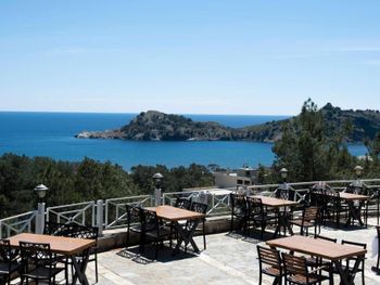 Один из самых близких отелей к морю в районе. Есть собственный пляж. До моря довозит шаттл. Понравилась терраса с видом. Хорошая зона вокруг бассейна. Обильный завтрак.