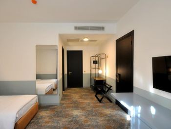 Часть номеров находятся "вниз" от ресепшена, из-за этого deluxe city view был с решетками и не самым красивым видом В туалетной комнате было грязновато, нет двери душевой кабины, из-за чего много воды на полу образуется. Также, пришлось просить на ресепшене отдельно фен и зубную щетку (почему этого не было в номере - непонятно)