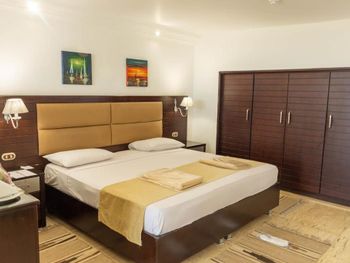 Персонал грубияны, плохо говорят по английски, нет никакого дела до гостей (могут по 10 минут при тебе говорить на арабском друг с другом, делая вид что тебя здесь нет). Заселяют долго, при выселении браслет долой и вон с пляжа, хотя вначале говорили что это не будет проблемой. При мне несколько человек заселились и все жаловались что комната не соответствует бронированию. За окном дискотека, шум до 1 ночи. В туалете грязная сантехника, неприятно пользоваться. Завтрак безобразный, остался голодным, в кафе грязно. В жизни сюда не вернусь, и жалко тех кто забронировал этот отель на весь срок отпуска. Цена сильно завышена, те кто приезжает по путёвке платят за него в 2 раза меньше.